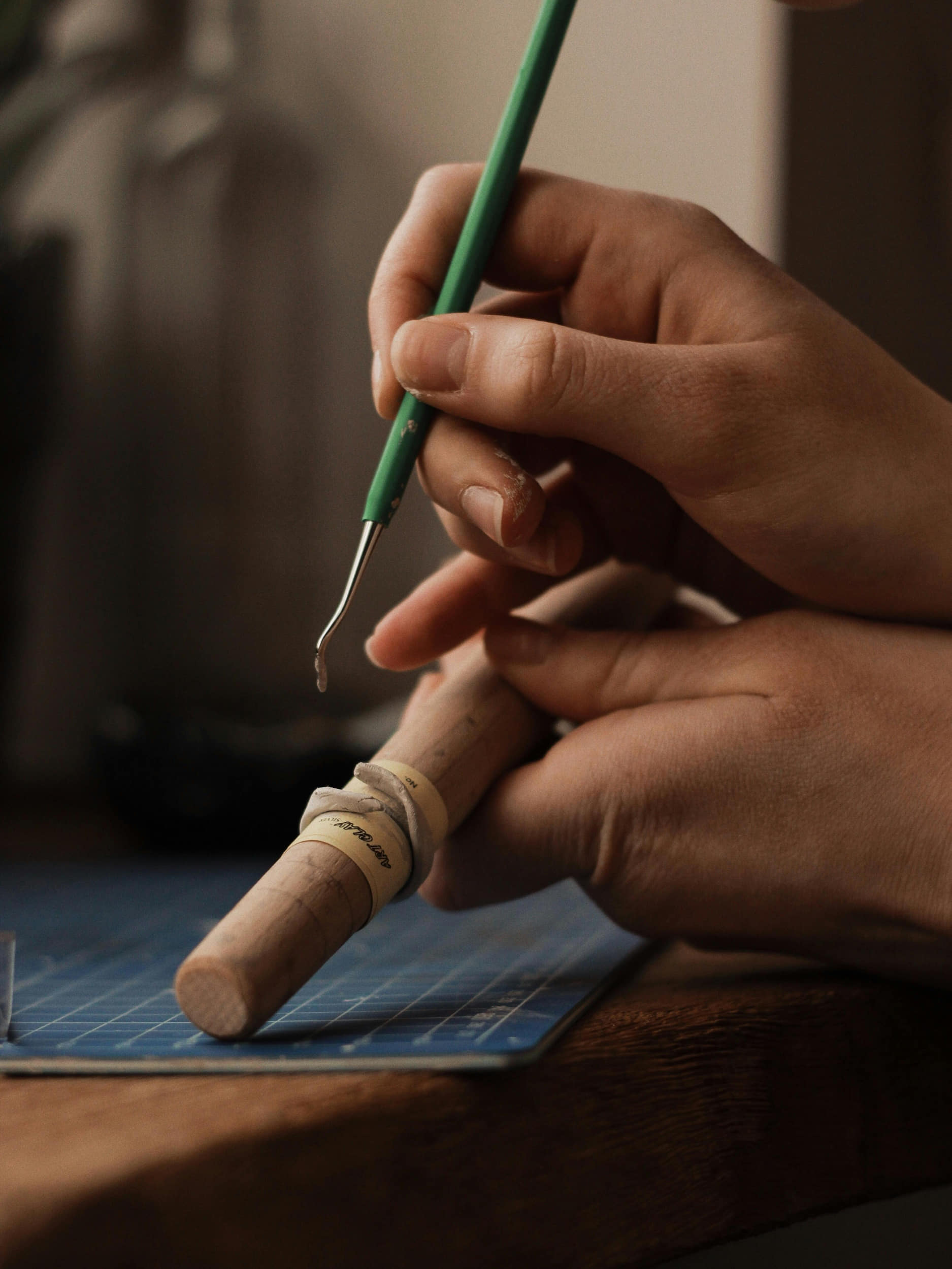 Setelah cincin dicetak, cincin kasar tersebut perlu dibentuk dan diperhalus. Perhiasan menggunakan alat-alat seperti gergaji, kikir, dan alat penyolder untuk membentuk cincin sesuai desain awal. Jika cincin terdiri dari beberapa bagian, seperti setting untuk batu permata, bagian-bagian tersebut disolder bersama dengan hati-hati.